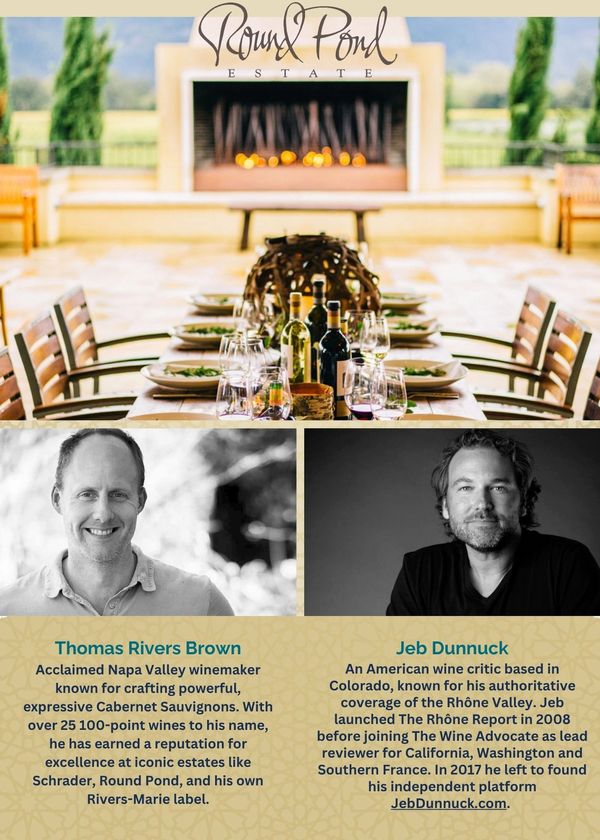 Join the MacDonnell Family, acclaimed winemaker Thomas Rivers Brown and world-renowned wine critic Jeb Dunnuck for an unforgettable evening at Round Pond Estate in Rutherford. This intimate dinner for 8 guests will celebrate the elegance and diversity of Rhone varietals, paired with exceptional cuisine and conversation.